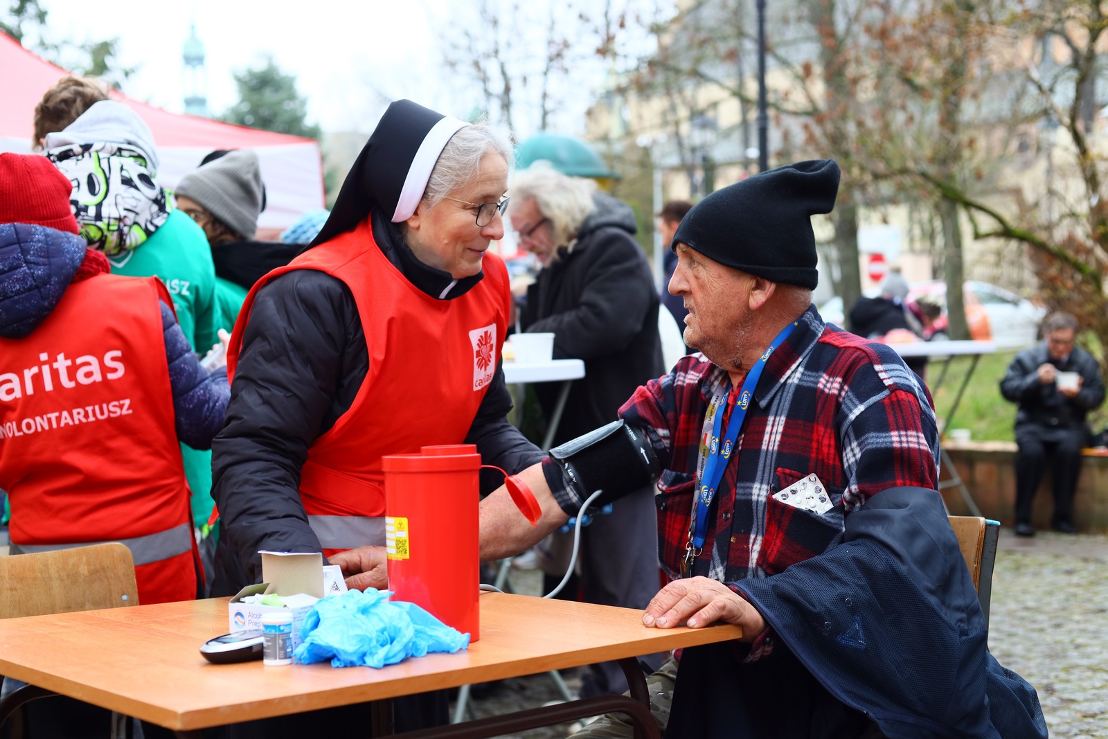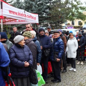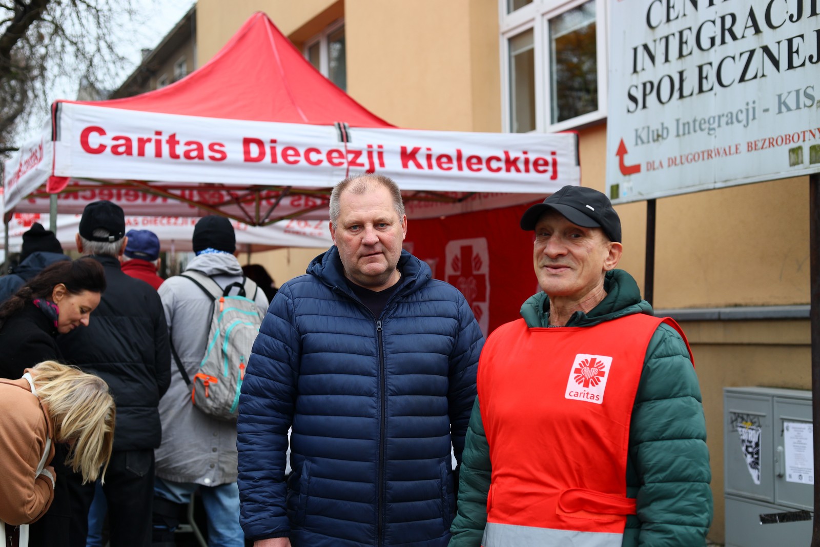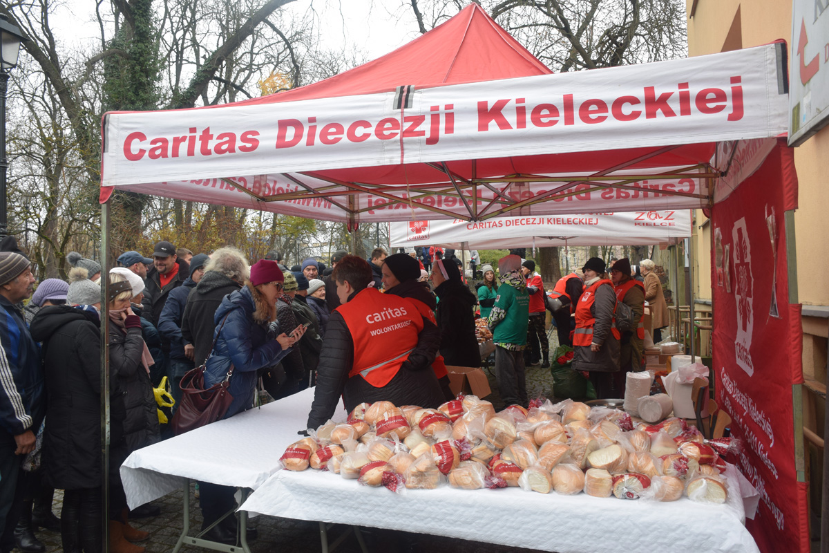 Natomiast 16 listopada 2025 w Kielcach miały miejsce obchody diecezjalne. W intencji ubogich odprawiona została Msza Święta w Bazylice Katedralnej pod przewodnictwem ks. Krzysztofa Banasika, wicedyrektora Caritas Kieleckiej. Mówił on w homilii, że  Światowy Dzień Ubogich stanowi dla nas wszystkich zaproszenie do wejścia w sam środek Ewangelii. Są ludzie, którzy nie są tak szczęśliwi jak wielu z nas. Ich historia życia jest bardzo trudna; uchodźcy, bezdomni, ubogie dzieci, starsi. Oni potrzebują nas, często wystarczy ich wysłuchać, pragną, by ktoś z nimi usiadł, porozmawiał, po prostu potraktował ich jak równych sobie.  Po Eucharystii Caritas przygotowała Namiot Miłosierdzia, gdzie osoby ubogie i w kryzysie bezdomności otrzymały m.in. ciepły posiłek, słodkie przekąski i odzież. Można było porozmawiać z wolontariuszami i pracownikami Caritas, skorzystać z konsultacji medycznej, zmierzyć poziom cukru i ciśnienia. Młodzi wolontariusze ze Szkolnego Koła Caritas w Piekoszowie rozdawali skarpety i rękawiczki, które zbierali w swoim środowisku w ramach akcji charytatywnej, a panie z Parafialnych Zespołów Caritas częstowały własnoręcznie przygotowanymi wypiekami. Ponad 120 osób mogło się posilić, porozmawiać, otrzymać także wsparcie w postaci ciepłej odzieży.