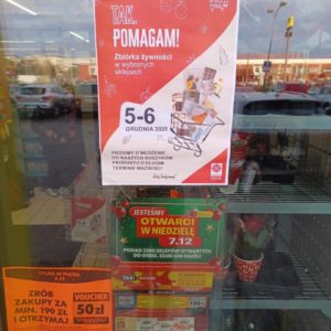 Dziękujemy Darczyńcom, Wolontariuszom i Pracownikom sklepów za zaangażowanie i włączenie się w akcję, która wielu osobom pomoże godnie przeżyć Święta Bożego Narodzenia.
